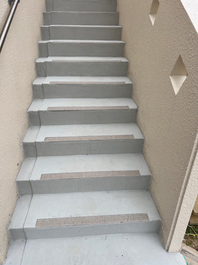 | 工事種類 | 外壁塗装、防水工事、タイル張り替え、駐車場生コン打ち、外構フェンス取り付け、外階段左官補修仕上げ工事 |