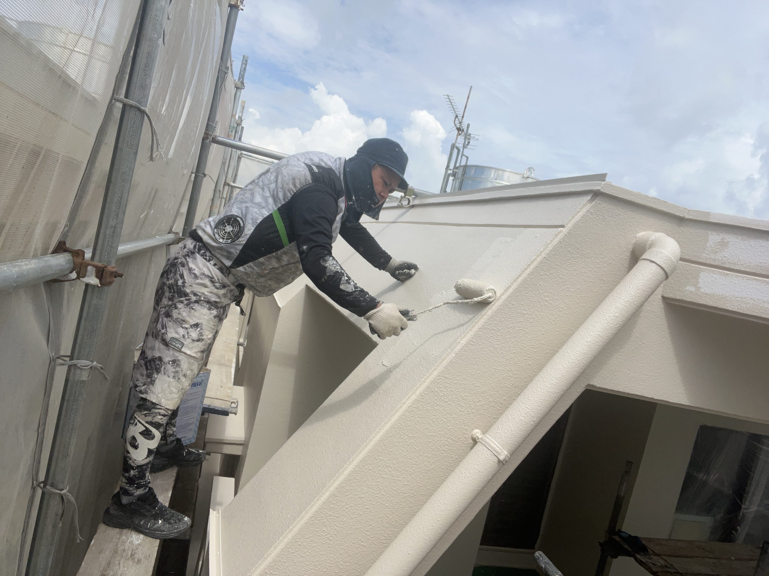 代表親方ブログ2024.08.23上塗り〜ポイント色塗装仕上げこんにちは、川田塗装 代表 川田健人です!昨日から上塗り2回目塗装と今日からポイント色塗装仕上げを行いましたー( ◠‿◠ )しっかりと厚塗りしていきますよ〜♪(´ε` )庇のポイント色も塗っていきました!こんな感じで仕上がりました!それから養生を剥がした後に窓ガラスの清掃も行います!それにて網戸の張り替えも全部無料サービスで行わさせていただきます(o^^o)施主様も大喜びです( ◠‿◠ )いよいよ明日は足場解体をしていきまーす!無料お見積はこちら