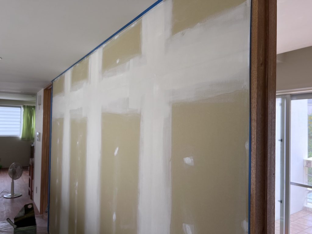 代表親方ブログ2025.03.19今日はお家の中のボード塗装をしました!こんにちは、代表親方の川田健人です。今日はいつもお世話になっている建築屋さんからのご依頼でお家の中の間仕切り壁の塗装を行ないました。Beforeまずはパテ処理から行なっていきます。パテ処理後パテ処理hが終わった後は塗装仕上げをします。塗装完了!綺麗な白壁に大変身しました!大切なお家の中の塗装も傷んできたらぜひ一度、川田塗装にご相談下さいね!( ◠‿◠ )無料お見積はこちら