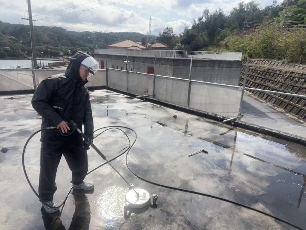 こんにちは、今日は新しく始まる現場にて高圧洗浄を行ないました。