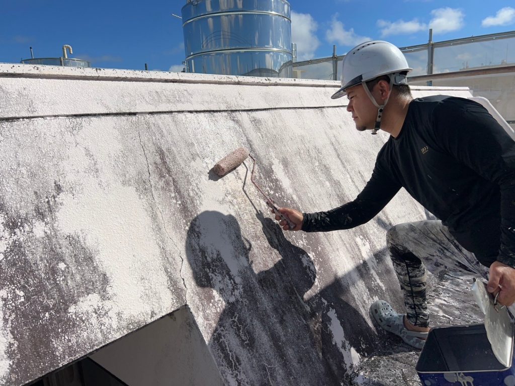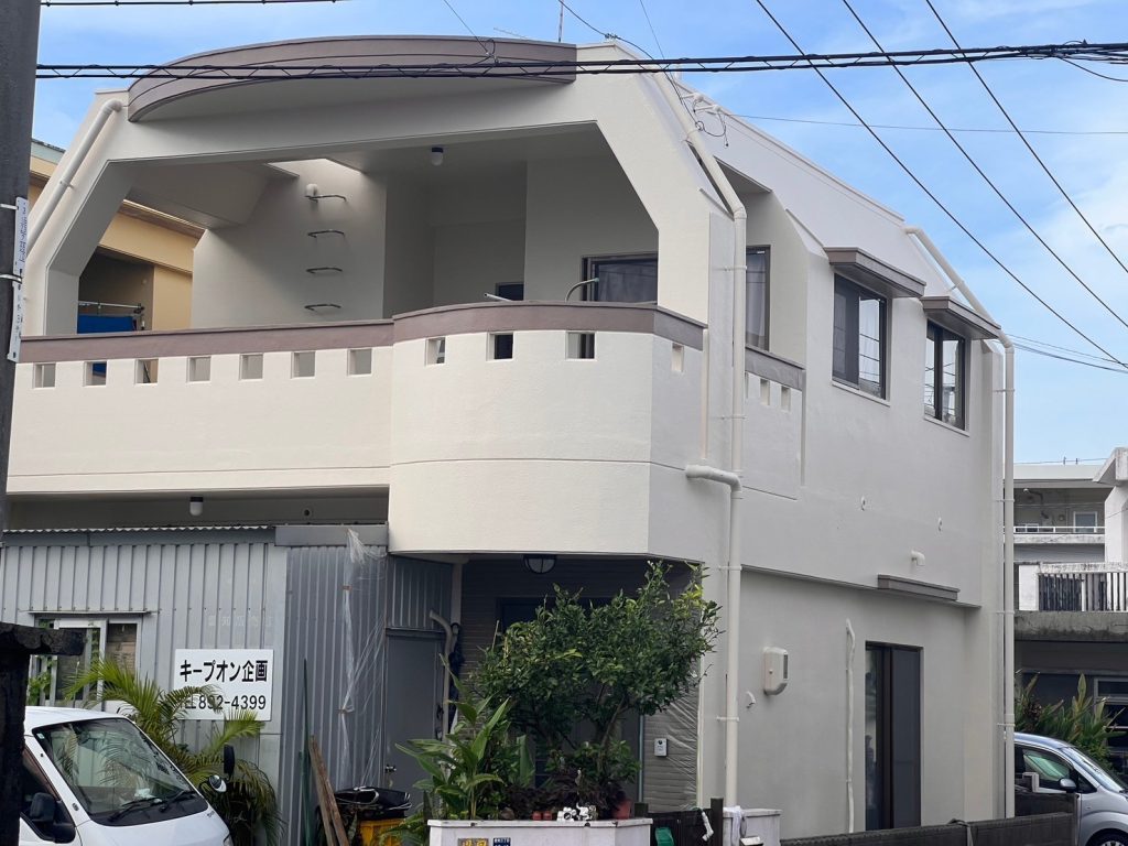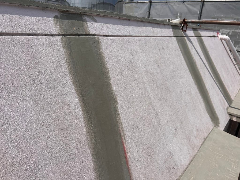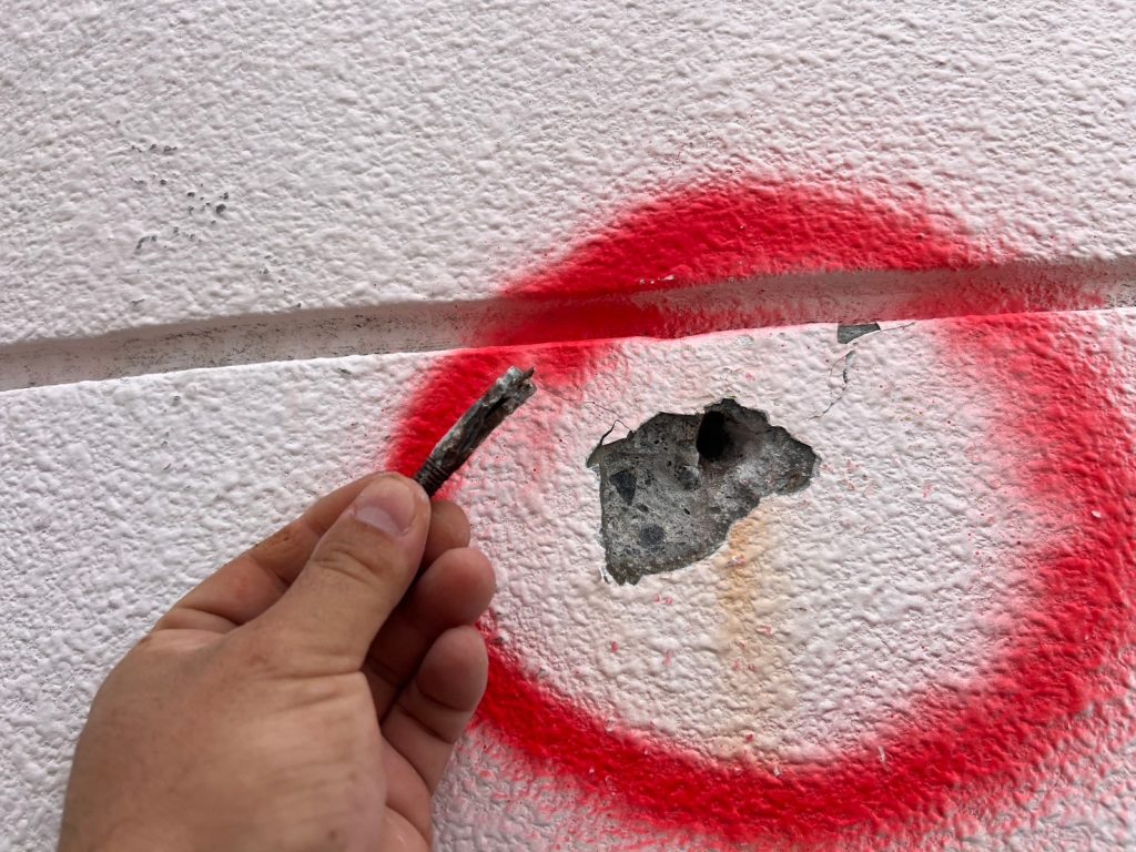 補修後をぼかすように周りのかべと肌合わせ吹き戻しを行ないます。
