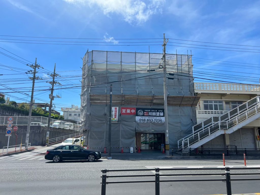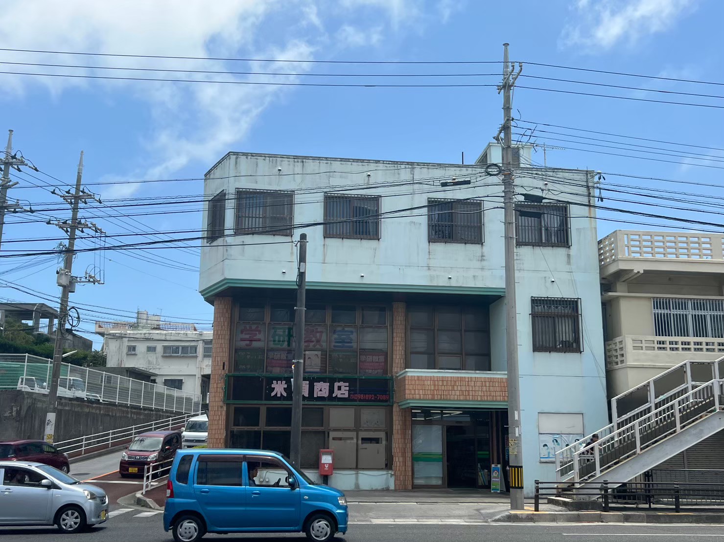 宜野湾市愛知の米須商店(学研教室)を鮮やかなブルーで外壁塗装!