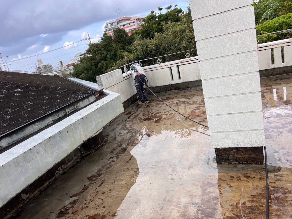 剥がした後に、高圧洗浄にてさらに綺麗にしていきます。