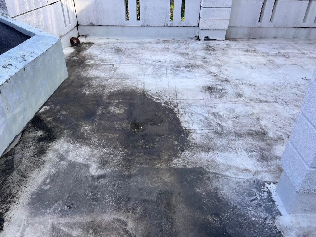 黒い部分には水溜まりができて、既存の防水層がプカプカ浮いていました。