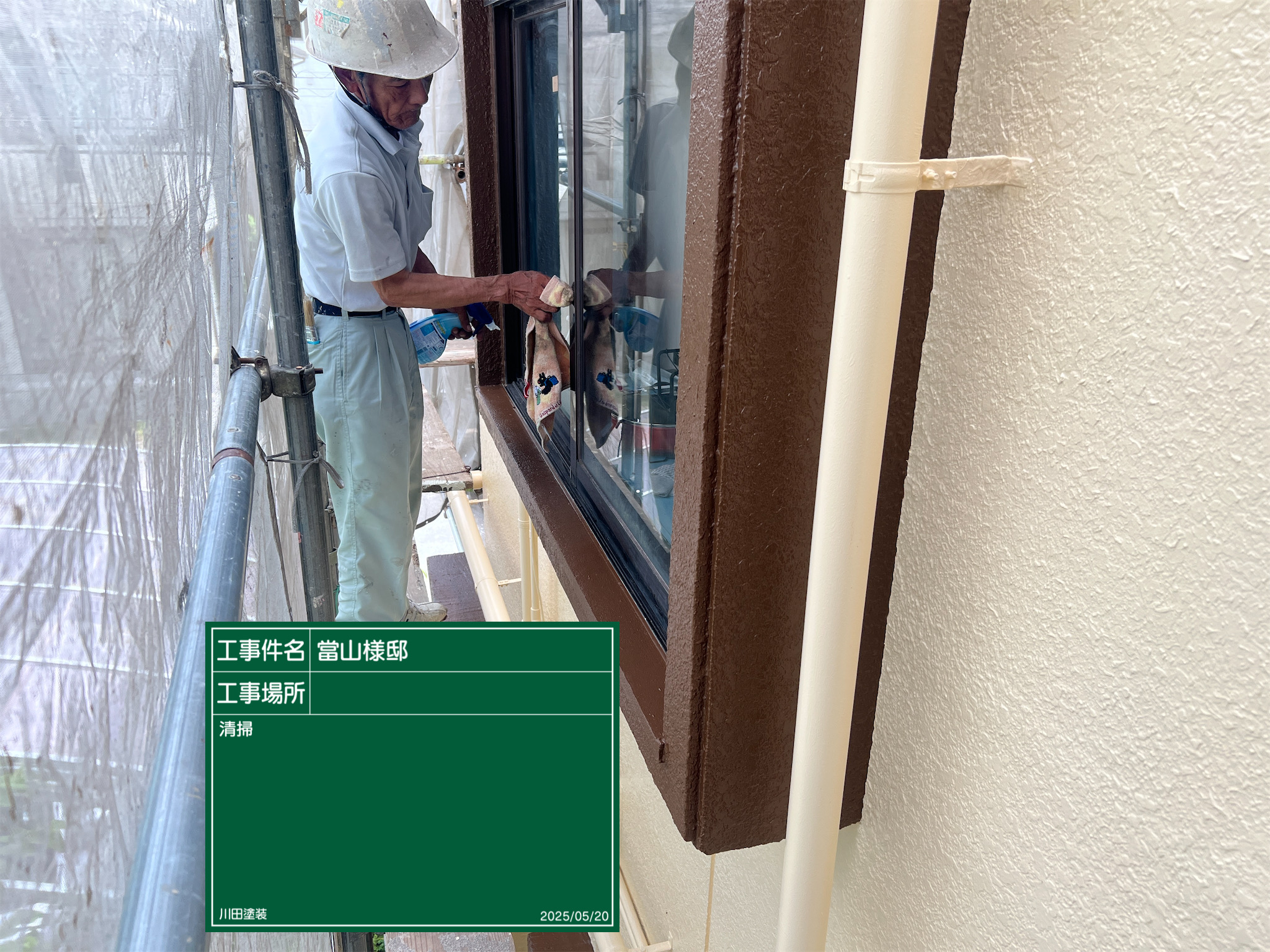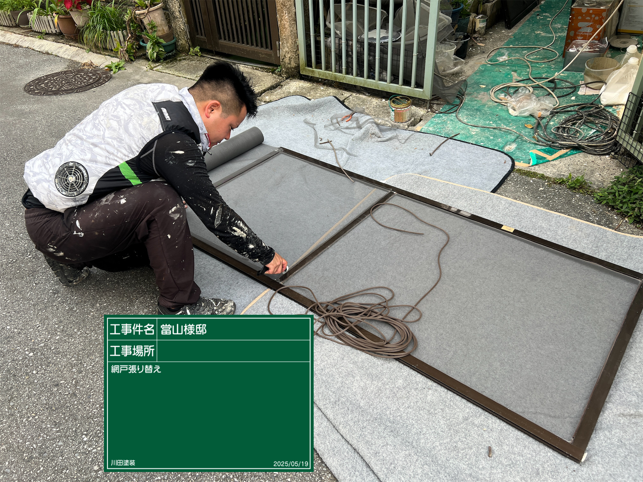 代表親方ブログ2025.05.23志真志現場にて〜こんにちは!代表の川田です。志真志現場もいよいよ大詰めです😊DCP PHOTO窓の養生を剥がした後は拭き掃除にて清掃やサッシ溝の清掃を行います。DCP PHOTO清掃している間に網戸を張り替えます。川田塗装では、穴が空いている網戸や、古くなっている網戸は無料サービスにて張り替え致しています✨防水工事の方も終わりましたので、防水工事の進捗状況は明日、ブログにて更新していきたいと思いまーす✌️最後まで見ていただきありがとうございました☺️✨無料お見積はこちら