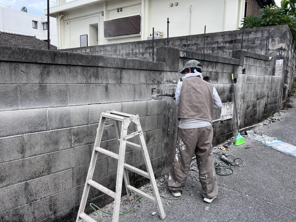 続いては、ブロック塀の上2段を撤去していきます😤