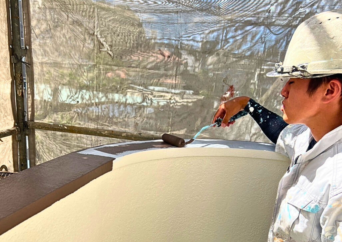 最終の仕上げ塗りを行います。共用部分の美観や耐候性を考慮し、細部まで丁寧に仕上げます。