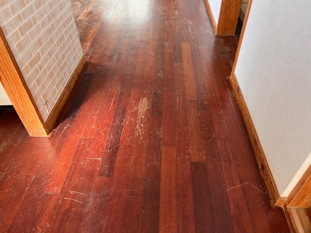 違う角度からもご覧ください!傷だらけの床が、すっかりと、塗装職人の手塗りで元通りになりました!川田塗装では膜厚を厚くつけるためにフローリングは5回塗りをしています。長持ちしてほしい願いを込めて!(^^)!