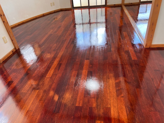 「いつもお世話になっております、ハウスクリーニング店さんからのご用命で今回フローリング床研磨ニス塗装工事をやらせて頂きました。信頼していただきありがとうございます。今後ともよろしくお願いいたします。