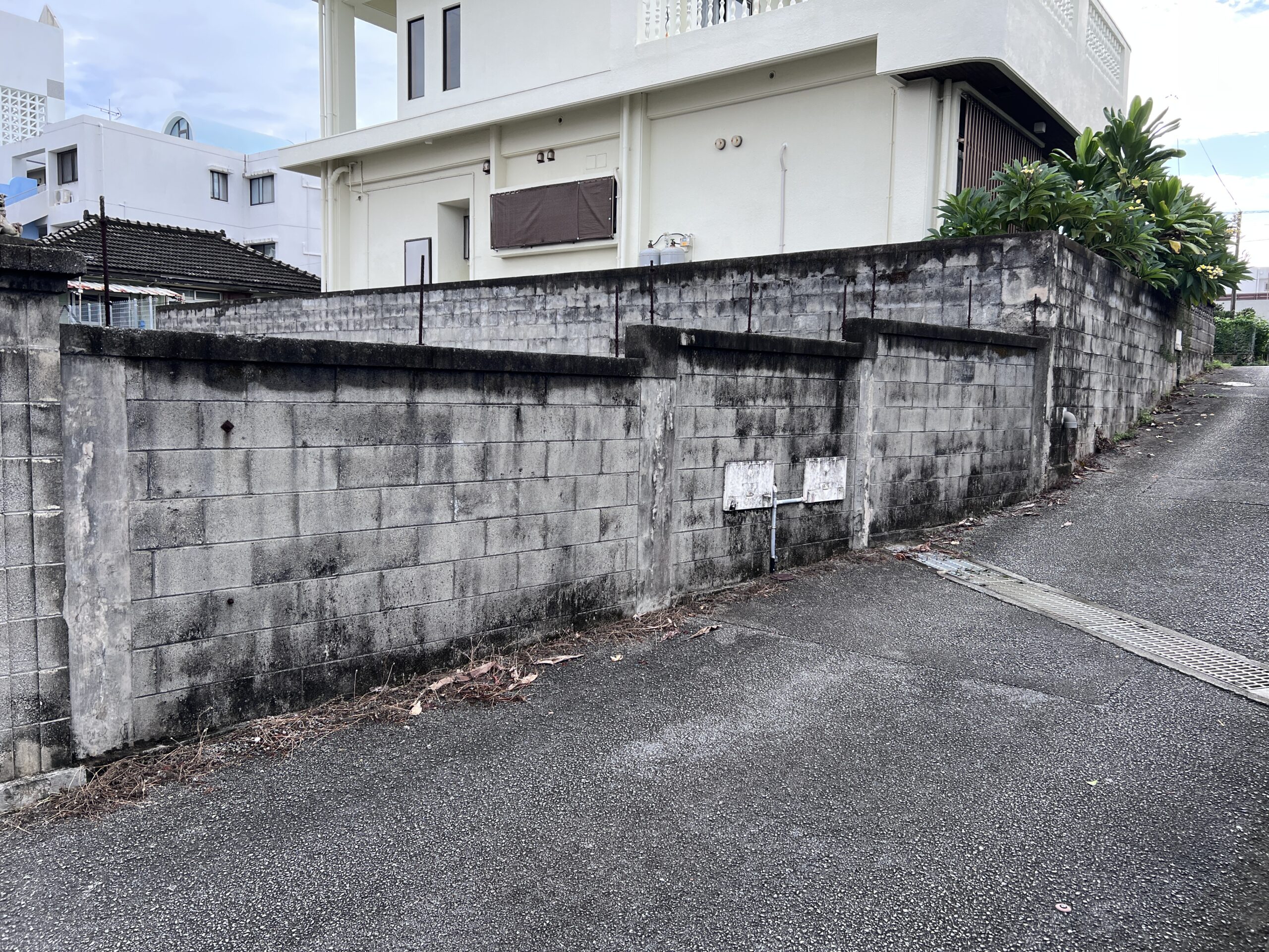 - ブロック塀の汚れが目立つ