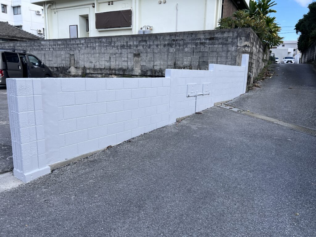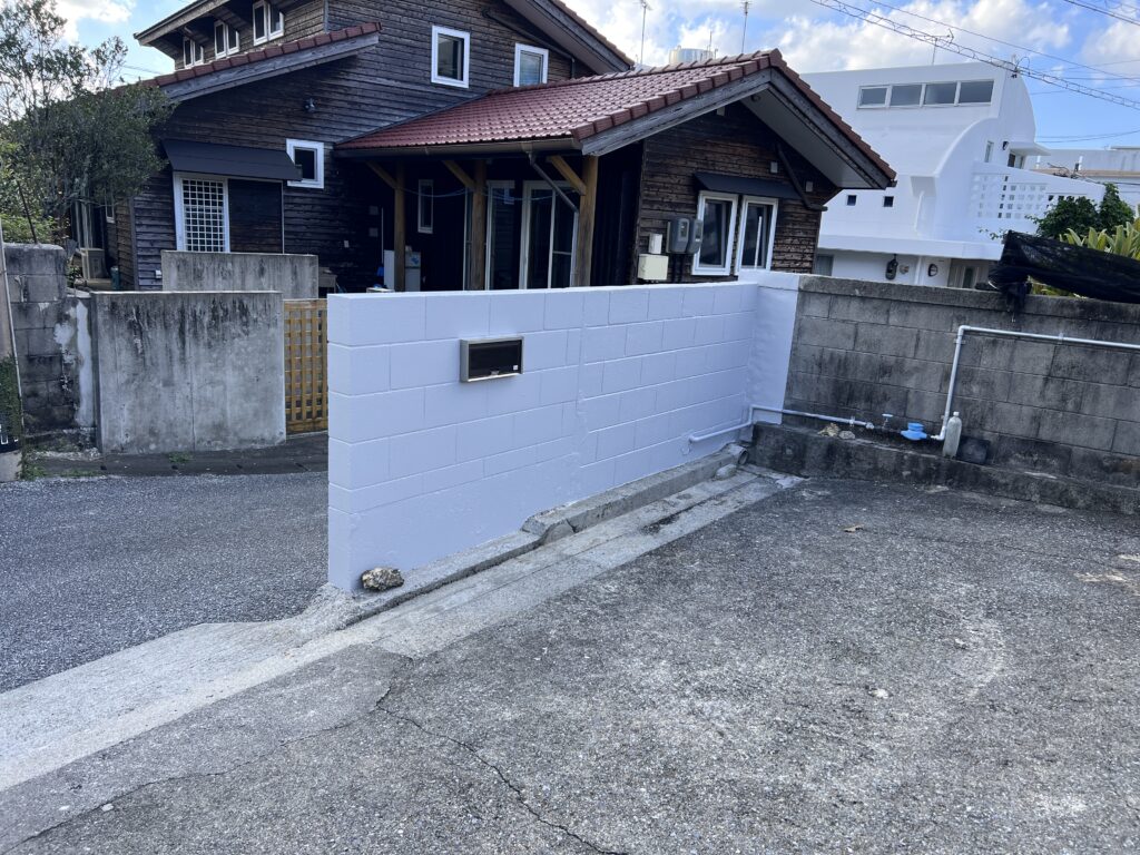 こんにちは、川田塗装 代表の川田 健人です。宜野湾市にて行なっていた、擁壁ブロック塀のリフォーム塗装工事が、本日無事に完工いたしました✨