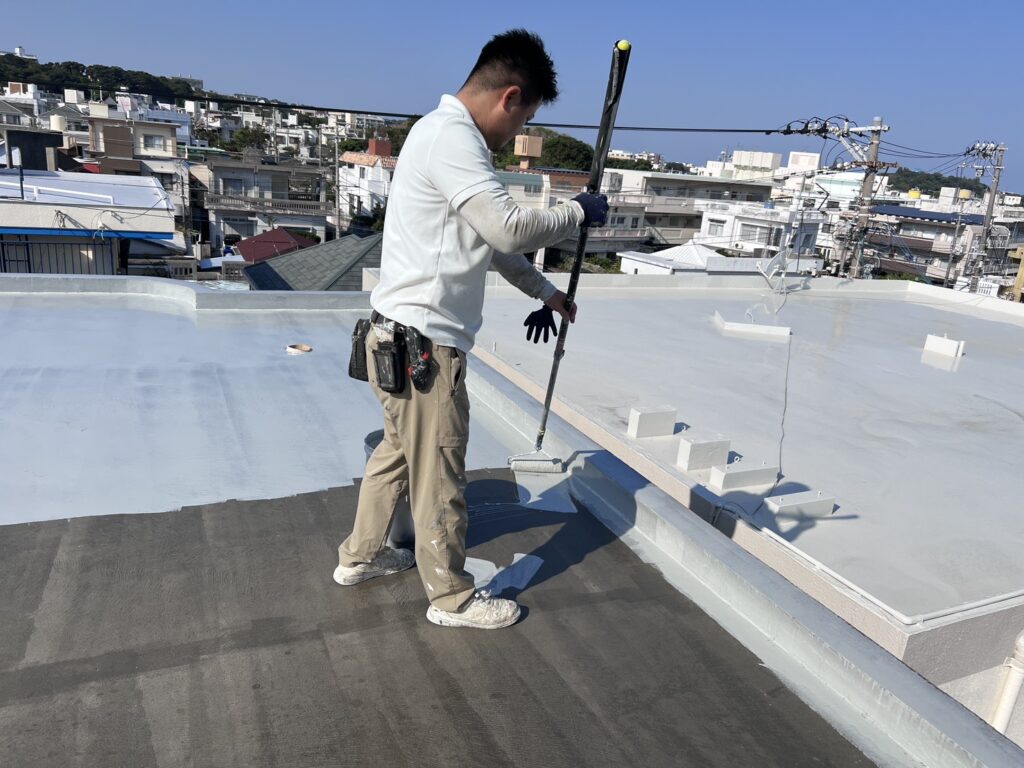 下地と防水材をしっかり密着させるための大切な工程です。ここを丁寧に行うことで、防水層の持ちも変わってきます。