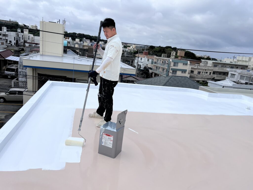 宜野湾市で屋上防水工事|高圧洗浄から遮熱トップコート仕上げまで。はじかさ丁寧施工😊