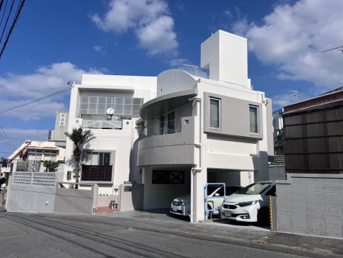 施工事例ホワイトとグレーの2色でガラリと色合いが変わりました 施工内容 内訳 施工場所 宜野湾市嘉数 築年数 23年 塗替え回数 一度目 工事種類 外壁塗装、防水工事 塗面積 外壁591平米、防水132平米 費用 ★★★★☆ 施...